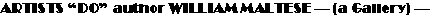 There are reasons I decided to do this section of my web-page. Several times in my life, Ive found myself wishing that I could somehow have been the lover of a genuinely great artist who could have and would have voluntarily enjoyed artistically rendering my image, in one way or another, again and again; thereby providing me a certain immortality. However, I never seemed to have ended up in the right place at the right time with the right talented person. With no such place, time, or artist, even lately having seen to be on my immediate horizon, and seemingly even less likely of making an appearance, as even more years come and go, Ive decided its now or never as far as taking matters into my own hands as usual at least to the degree I see possible. Ive decided, nude photograph of me at a younger age in hand, to seek out various artists whose work Ive personally come to enjoy, in whatever their particular artistic media, and ask them, using my photo by way of template, each to provide a work of art, in his or her own style, for an ongoing series of artwork to be collectively titled ARTISTS DO author WILLIAM MALTESE. Therefore, as the weeks, months, and years progress, youll find, here, in this hopefully ever-expanding section, not only the original photo provided each artist, by way of hoped-for inspiration, but each artists resulting work, as his or her commissioned piece is completed.